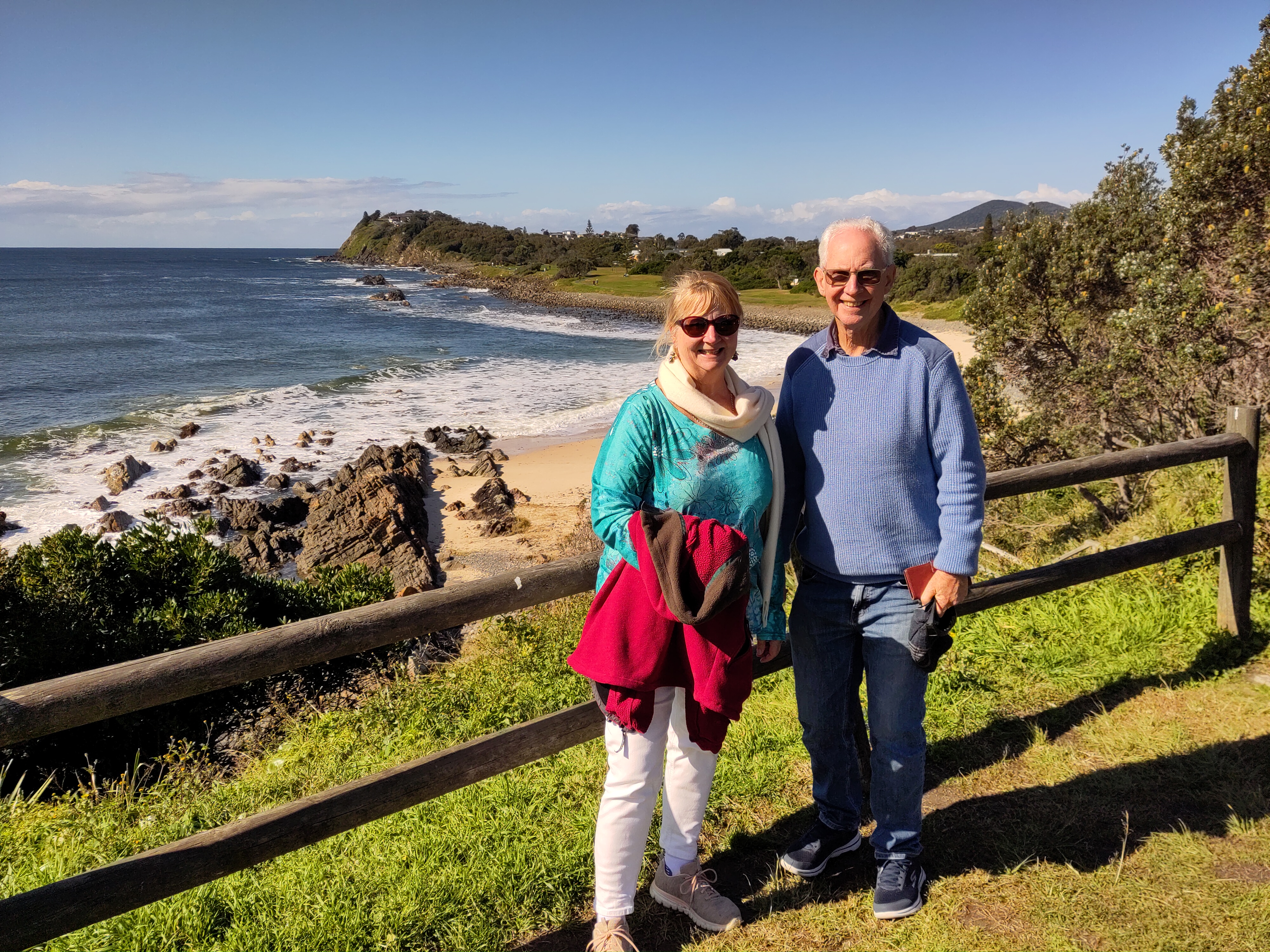 Nach dem Frühstück machten Sharon und Peter mit mir eine Autofahrt entlang der Lakes Road nach Tuncurry und Forster, unterbrochen von mehreren kürzeren Wanderungen an der Küste bzw. den Stränden entlang. Wir hatten den ganzen Tag den tollsten Sonnenschein und genossen es. Leider sahen wir keine Delfine, aber diverse Vögel. Unterwegs kauften wir noch Fisch für das Abendessen.