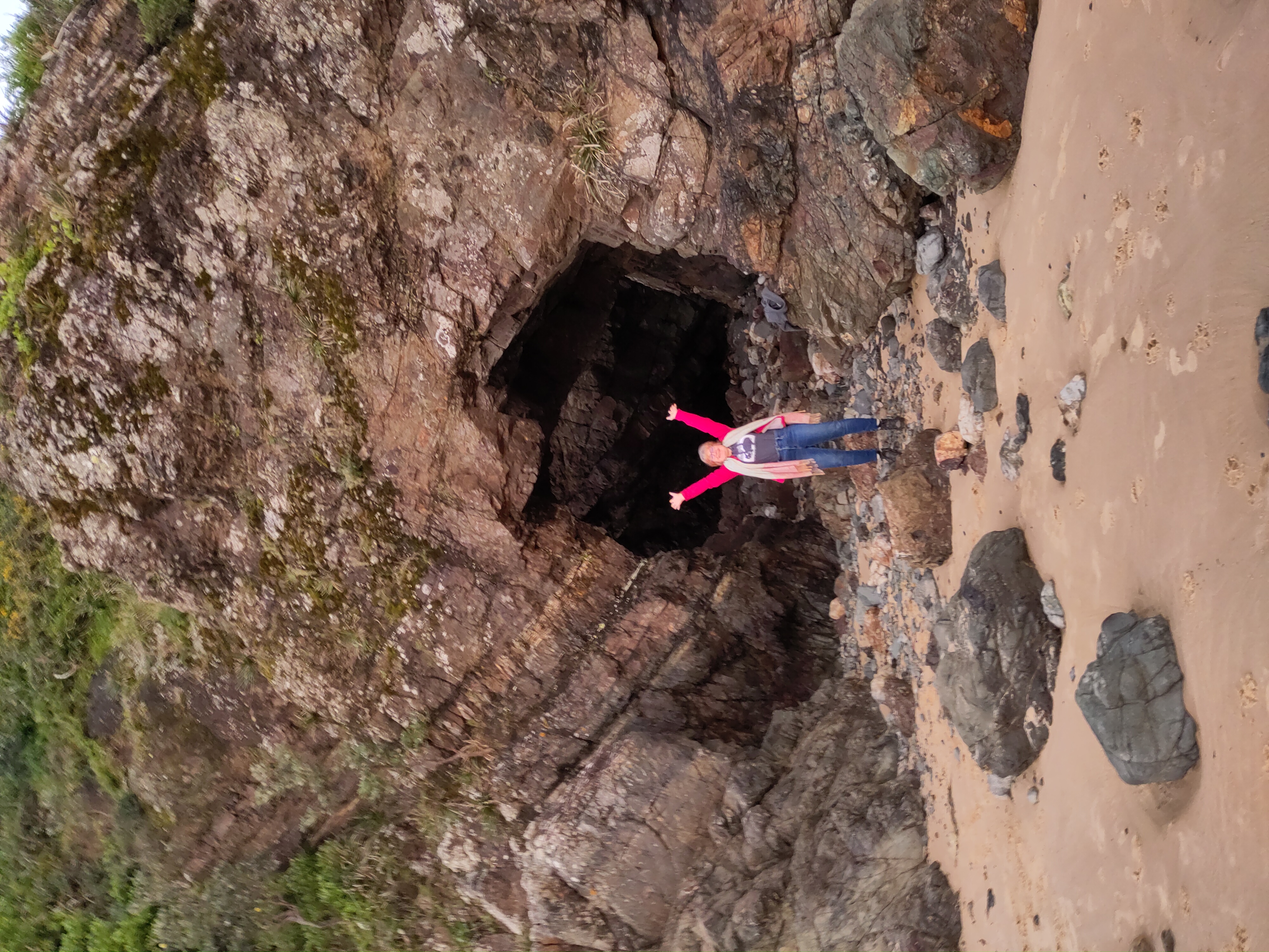 Nachmittags machten Sharon und ich noch eine lange Wanderung von der Ferienwohnung am Strand entlang und durch ein Stück Regenwald entlang zu dem Strand in der nächsten Bucht, wo es bei Ebbe eine nette Höhle gab.